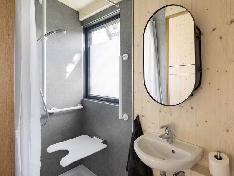 Das Haus auf Rädern ist so gestaltet, dass sich RollstuhlnutzerInnen selbstständig darin bewegen können und das Leben der BewohnerInnen nachhaltig erleichtert wird. Unterstützend wirken ästhetische und funktionale Produktlösungen aus dem HEWI System 900, wie beispielsweise Haltegriffe oder ein Duschsitz für das Bad. System 900 ist darauf ausgelegt, Menschen mit eingeschränkter Mobilität zu unterstützen und Ihnen Sicherheit, Selbstständigkeit und eine komfortable Nutzung zu ermöglichen.