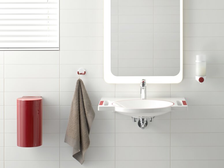 Die Modularität des Systems erlaubt eine vollständige oder teilweise Ausstattung des Sanitärraumes, angefangen mit klassischen Accessoires, über Komfortprodukte, bis zu Produkten für normierte, barrierefrei gestaltete Bereiche.