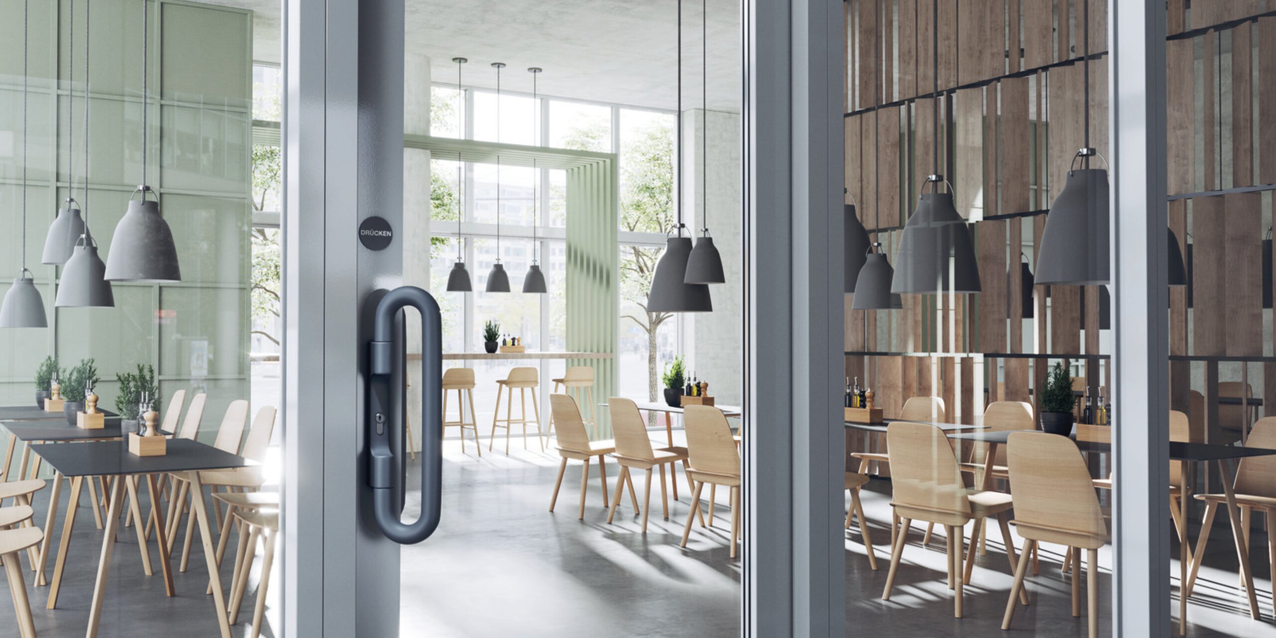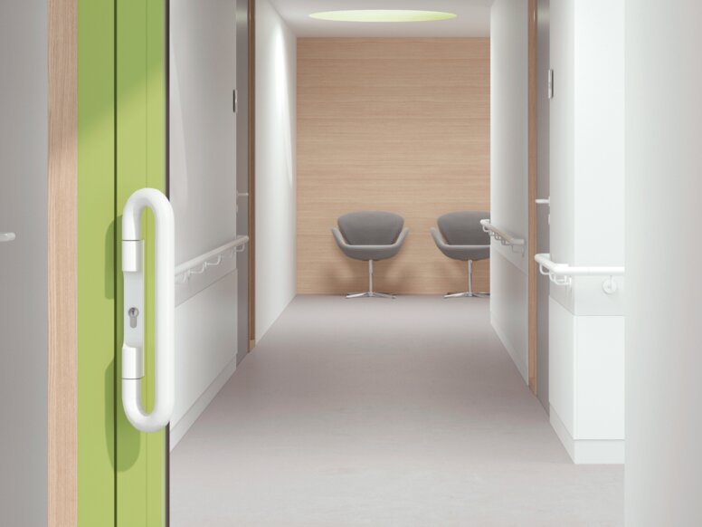 In accordance with DIN EN 179, HEWI push/pull handles are ideal for emergency exits where no panic situations are to be expected and the users know the escape routes. They offer the advantage that heavy doors in particular can be opened effortlessly with one hand.