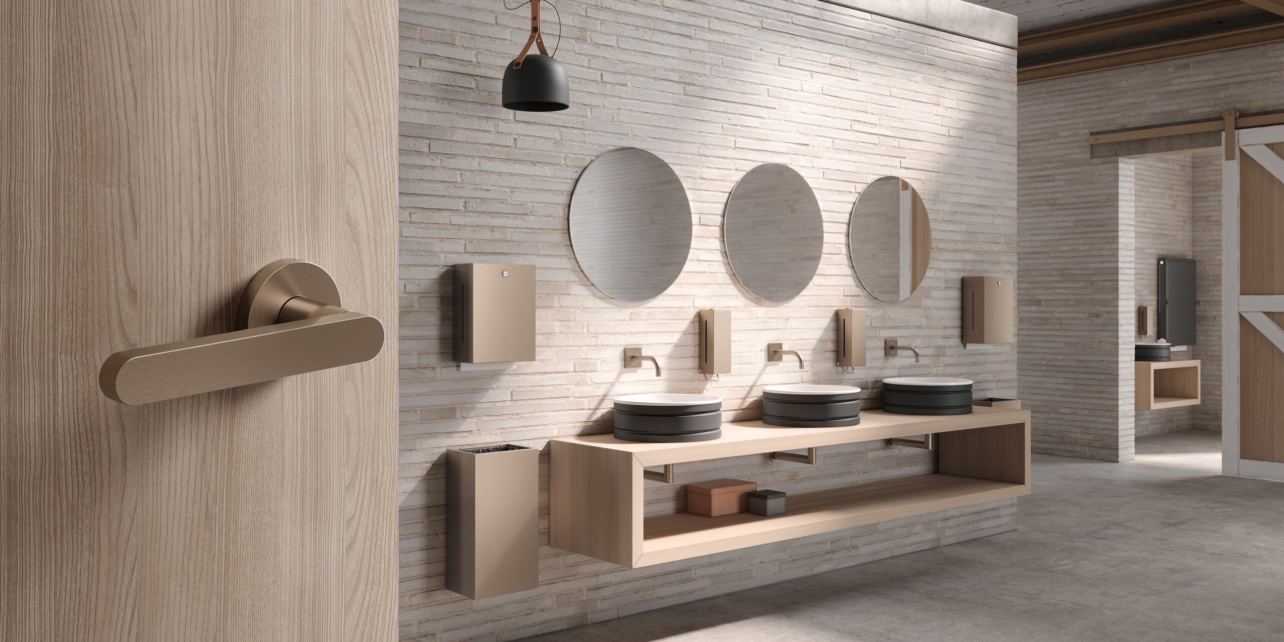 With Range 270, on the other hand, we translate the radius of the handle attachment into the surface of the handle. This makes the design more complex. Nevertheless, the form is convincing with its clear design. The surrounding edge gives the handle a high degree of precision and value. Range 270 made of stainless steel is modular, i.e. it can be expanded to form a larger product family and offers further possibilities for individualisation. This makes the 270 very versatile - it can be integrated into practically any room and architecture.