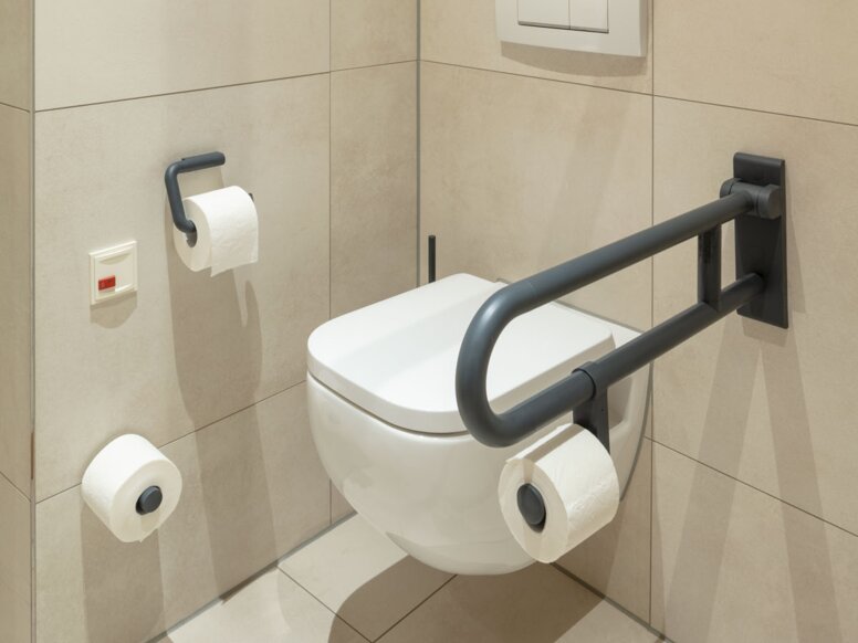 The HEWI washbasins with integrated accessibility are particularly useful. The shallow washbasin can be moved underneath and practical grab rails provide reliable support. These can also be used as towel rails.