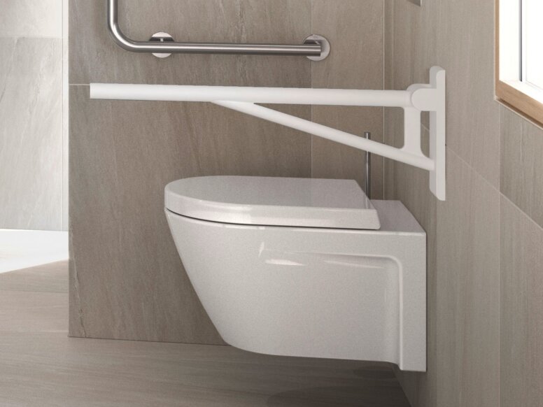 Folding support rails make it easier to stand up and sit down if strength and mobility are limited. Wheelchair users like to use a folding support handle to move from the wheelchair to the toilet and vice versa. A secure hold is essential in the bathroom. This applies not only to barrier-free bathrooms, but also to bathrooms for the elderly or care bathrooms, for example.